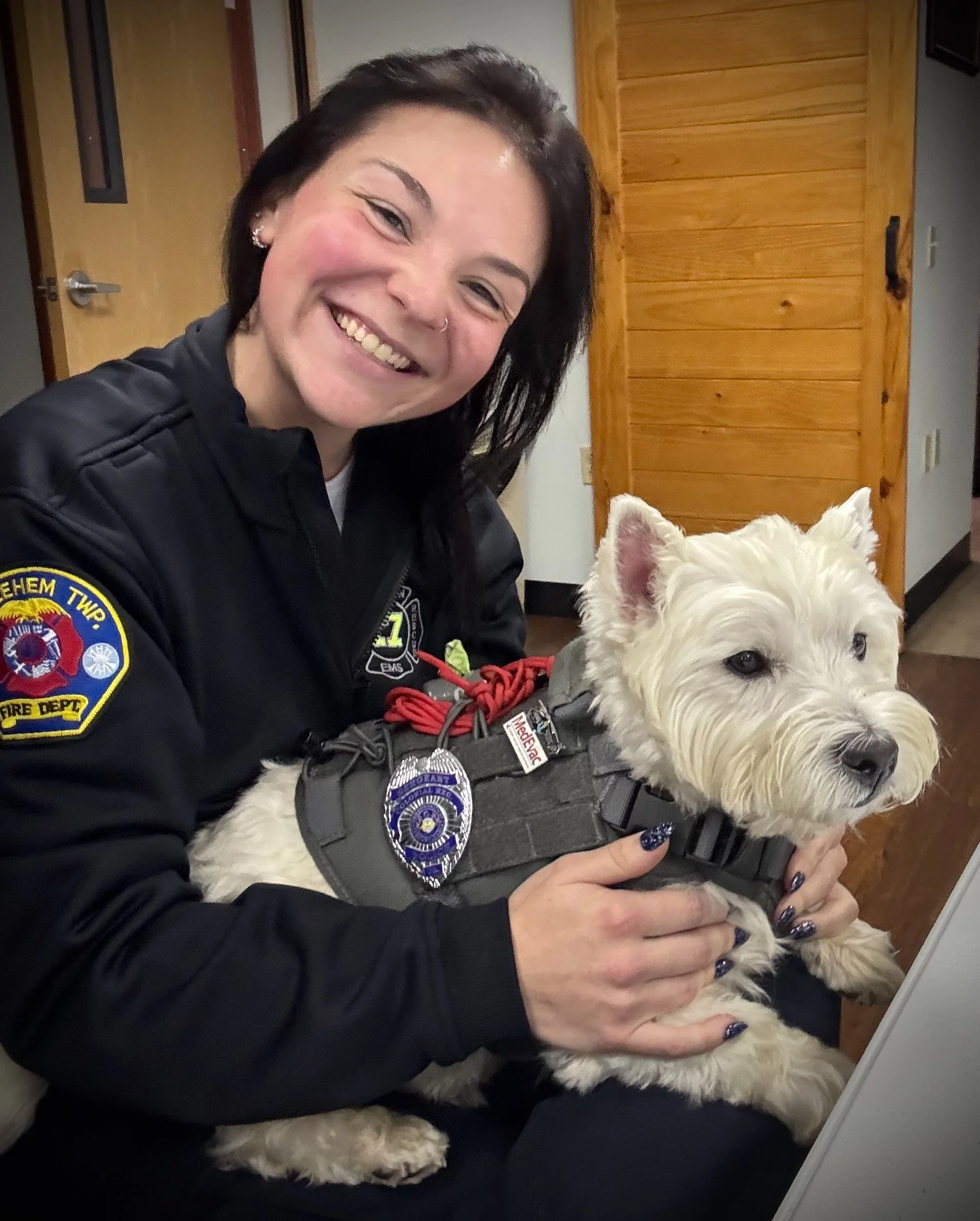 In 2024, Keagan was joined by his good buddy, Wally. Wally is also a Westie, actually a cousin of Keagan! He’s still in training, but has earned his vest and name badge. You’ll see one or both of them around stations and events! They love pets but please don’t feed them, they’re working!